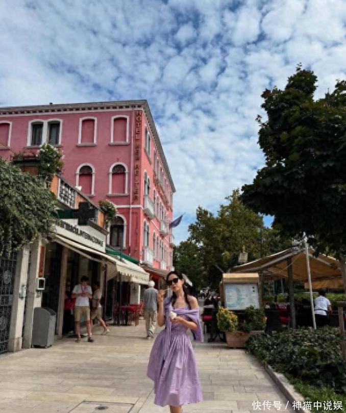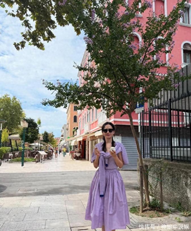 她站在威尼斯街头吃冰淇淋的相片传开了,薄荷绿裙子配玄色墨镜,看起来挺适意的