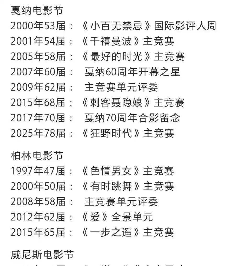 回归下舒淇的欧三经历,她入围过4次戛纳主竞赛和3次柏林主竞赛,以及三大电影节评委满贯,这是高出牛的收货!