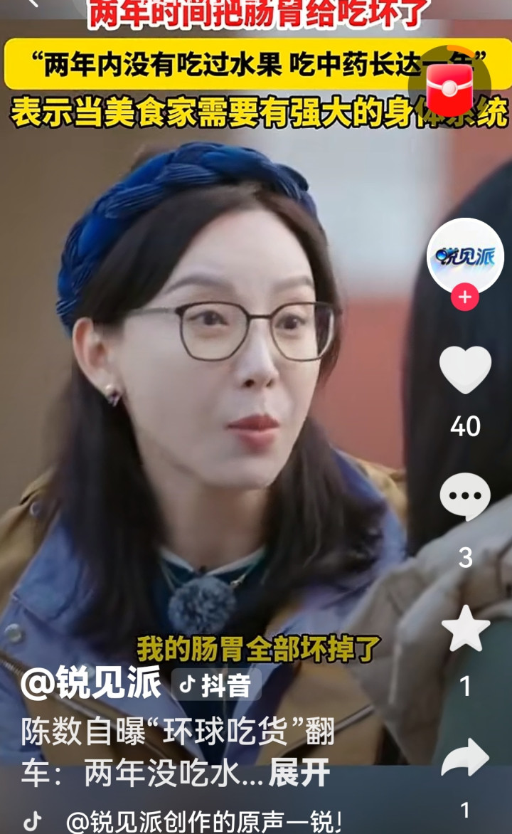 好意思食尝遍却尝出健康危境?著名女演员陈数自曝两年禁简直相!
