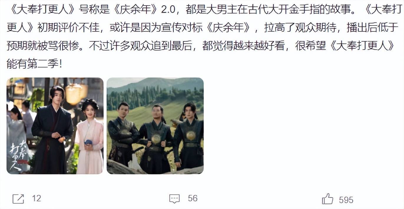 《大奉击柝东说念主》开播时对标《庆余年》,然则跟着剧情鼓动,它似乎连《九重紫》都未能卓越。