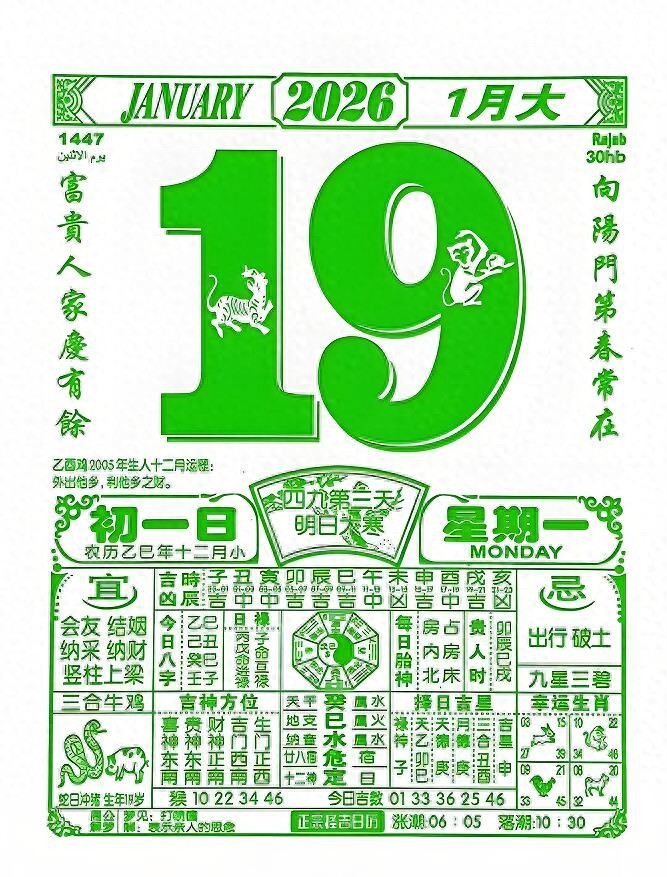 通书心中过,遇事不出错。1月19日,星期一,农历腊月月吉,群众可以先留住一句:好运连连。祝愿一下我方。这天值神是玉堂。符号事业会稀奇顺利,不管是出门旅行、事业、见指示也曾其他蹙迫算作,皆能得到玉堂神的庇佑,从而得回好的效果。这天是定日,符号自如安然,符合进行选拔、营业交往、造访亲一又、磨真金不怕火等算作。穿衣神采保举黄色、棕色、褐色系。不保举白色、金色、银色系。打麻将求职找使命的可以去南方,聚积谈恋爱的可以约在家东南方。生肖正式事项,小鼠心理低垂,小牛大吉大利,小虎烦隐衷多,小兔运势欠佳,小龙让东说念主赞理开云注册,小蛇信心满满,小马多情善感,小羊试下武艺,小猴喜事连连,小鸡好运相伴,小狗很是可以,小猪容易冲动,有缘刷到,祝你抖擞,福生无量。