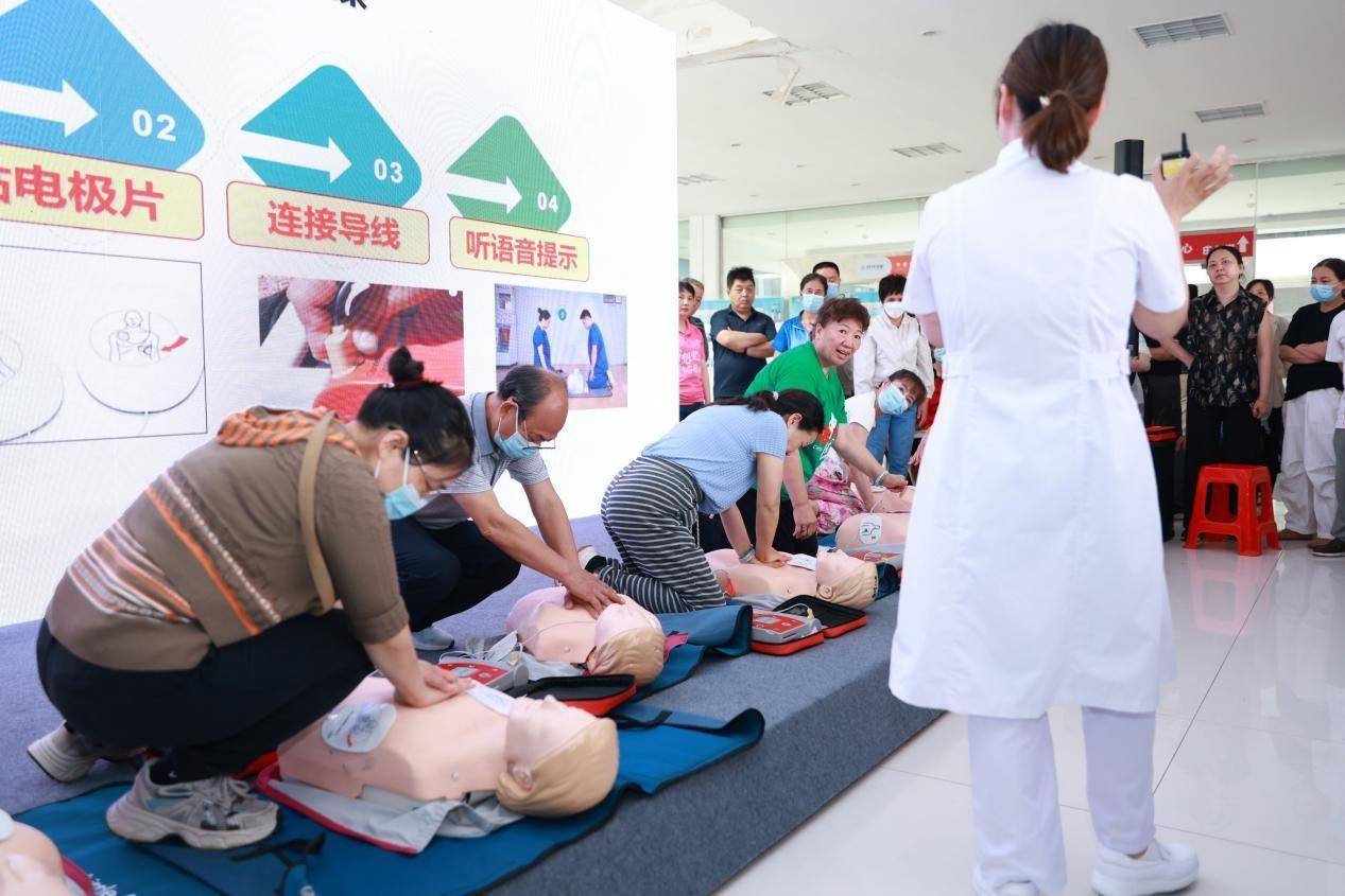 动作现场,湖南省东说念主民病院急诊科、康复科的巨匠团队围绕心肺复苏(CPR)、海姆立克急救法、AED使用等中枢手段伸开系统教养。康复科的宋奥博大夫指挥住户学习肩颈健康捕快操,成见科学畅通理念。急诊科徐一笑大夫联接真实案例,科普犬猫持咬、蛇伤济急惩办及疫苗法度接种学问,强调"第一时分科学处理"的迫切性。急诊科的谢索医护团队通过现象演示,详备西宾腹黑骤停识别与急救经由,并针对不同庚纪段东说念主群的异物卡喉惩办相反进行实操示范。