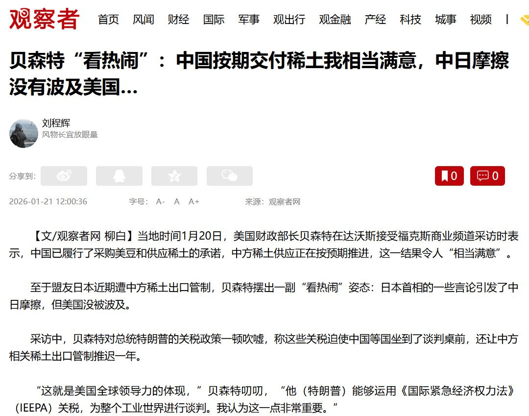 2026年1月19日,在高市早苗通告驱散众议院确本日,她忍不住对中国的稀土出口不竭抒发了气氛,称此举是“经济挟制”。她致使扬言要商量“志同说念合国度”选择动作,有关词不到24小时,好意思国财政部长贝森特的言论却让她的期待一刹落空。贝森特绝不遮挡地暗意,高市的声息固然激发了中日摩擦,但好意思国对此并不介意。这种气派不仅让高市早苗感受到了前所未有的孤苦,也暴露了好意思日同盟关联中的深层裂痕。